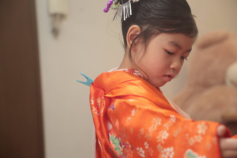 仲良しのおばあちゃんにヘアとお着付けをしてもらった7才さん。お支度の間はたくさんおしゃべりをして楽しませてくれました。コロコロと変わる表情がとても可愛らしく、ついついシャッターをきってしまいました。行程が多い7才のお着物。途中くたびれた様子もありましたが、なんとかお詣りまで頑張りました!